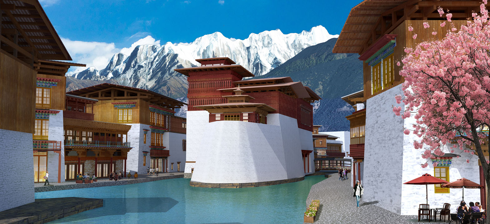 我们提出“人间仙境·米林水城”的总体定位,以建设“藏区新型城镇化的典范、国家固边兴边富民示范城市、西藏风情国际旅游目的地、高原康养度假旅游胜地、西藏高等技术教育产业基地”作为城市设计的主要目标。
